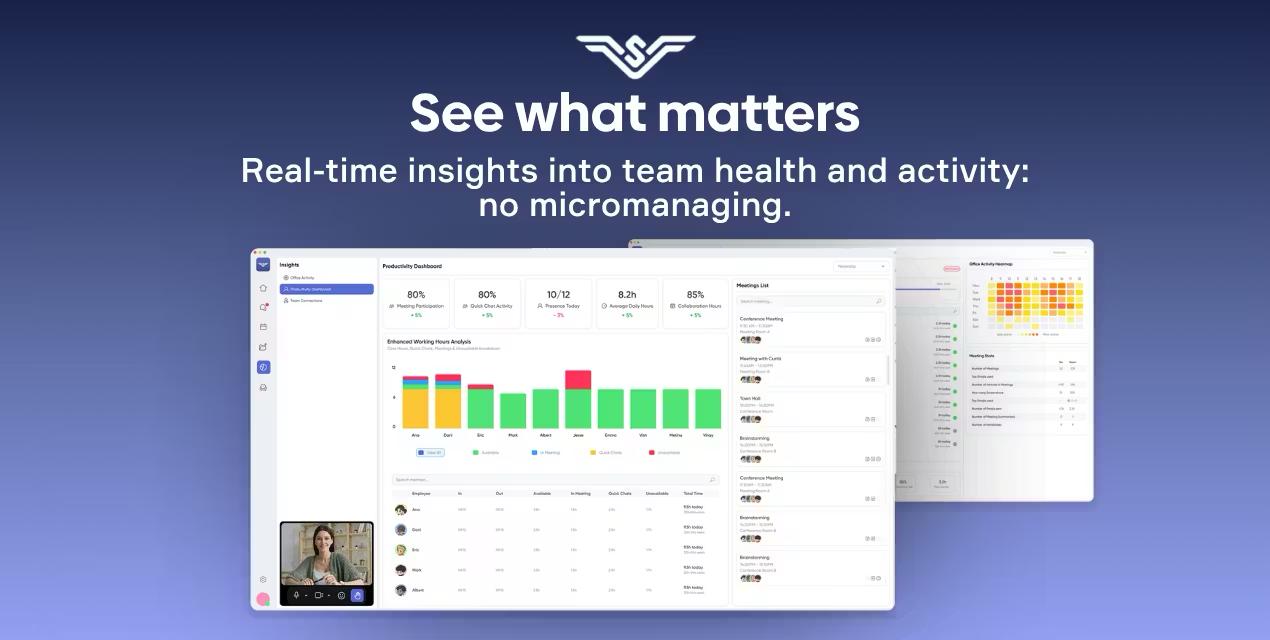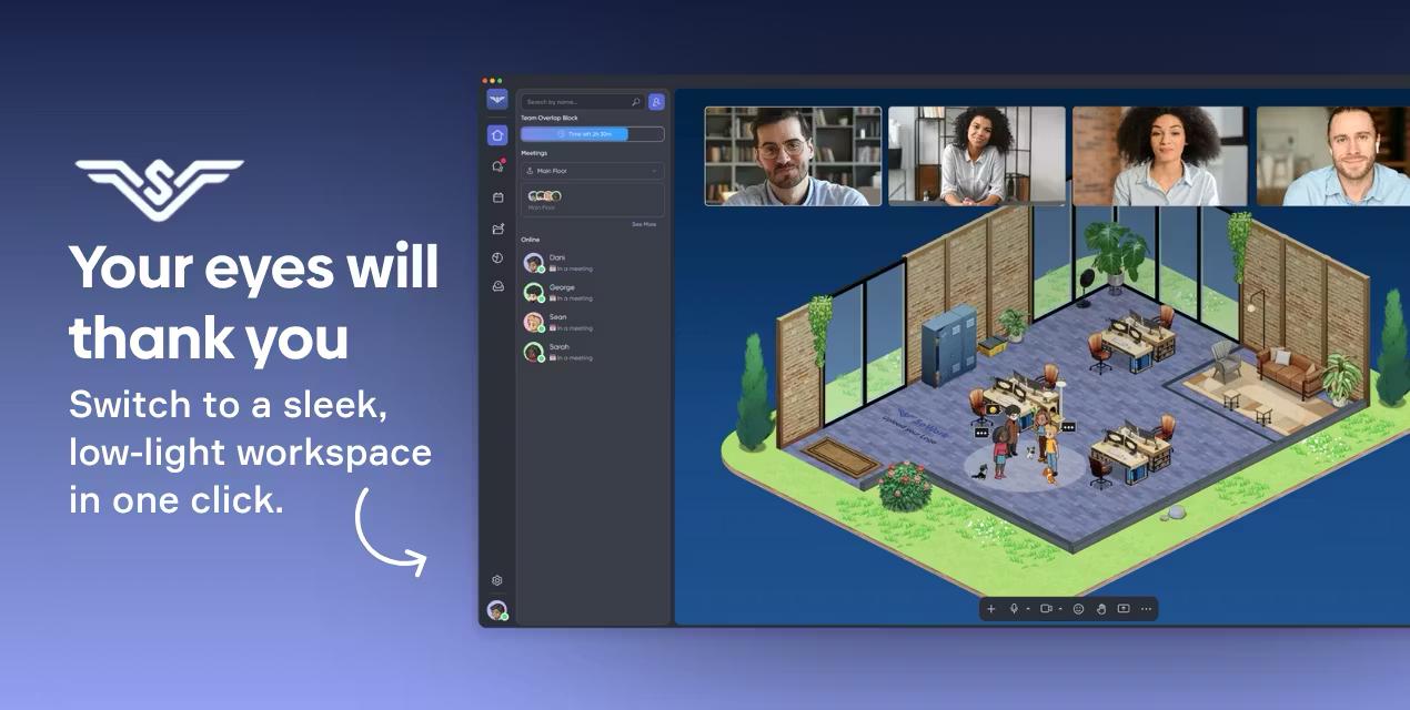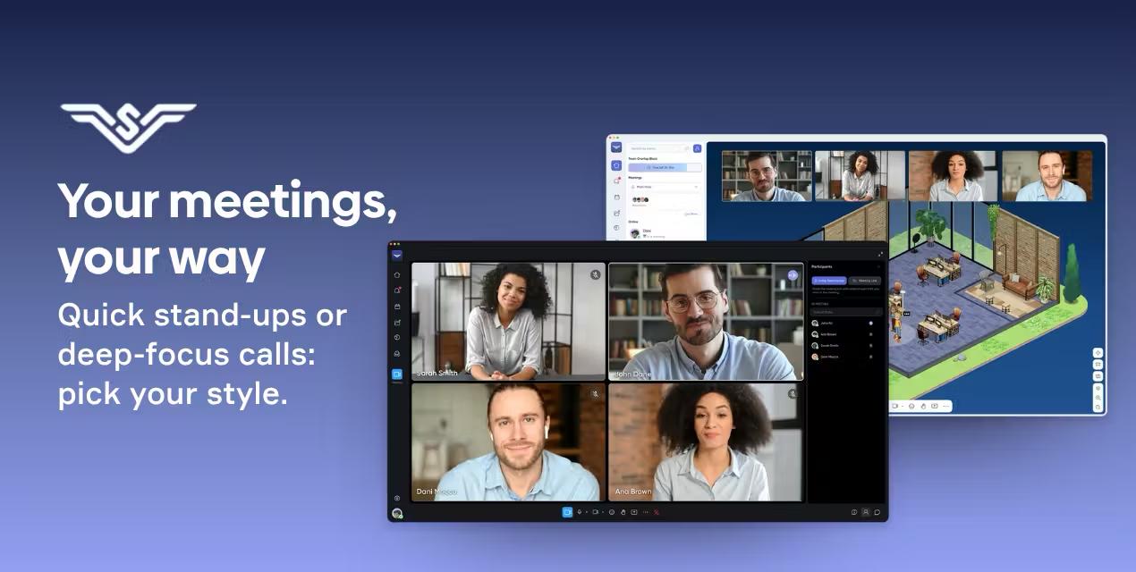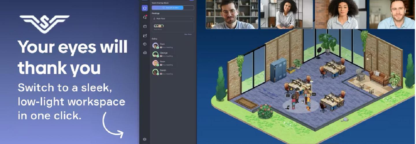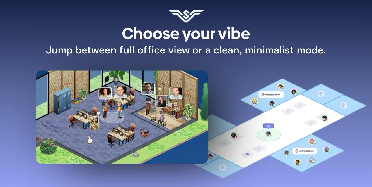 SoWork offers a game-inspired virtual office where remote and hybrid teams can gather, collaborate, and socialize. By combining real-time presence, spatial audio, video, full team chat, analytics, AI tools, and customizable environments, it becomes an always-open digital office for daily work and quick conversations.
