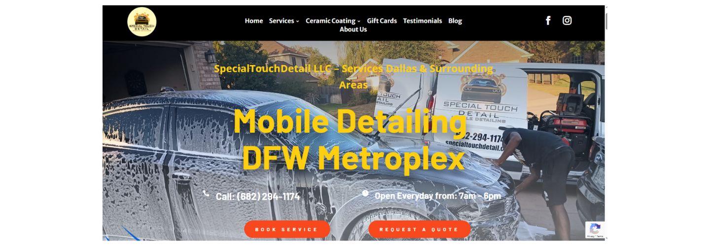 SpecialTouchDetail LLC, headquartered in Mansfield, Texas, is the trusted mobile auto detailing company serving the DFW Metroplex. We specialize in a wide range of services and packages, both for the interior and exterior of your vehicle. Our offerings include meticulous hand washing, interior steam cleaning, upholstery and carpet shampooing, waxing, paint correction, ceramic coating, and more. You can also take advantage of services like headlight restoration and engine cleaning to keep your vehicle in top-notch condition year-round. Join our newsletter to unlock special pricing and exclusive offers. Visit our website or contact us for a personalized quote. We are dedicated to exceeding your expectations and earning your business.