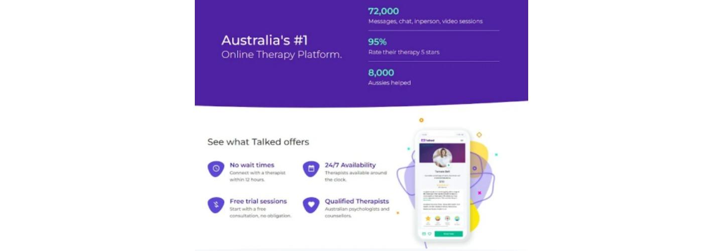 Talked is Australia's leading 24 hour online psychology and counselling platform. Easily search, book and connect with hundreds of qualified psychologists and counsellors in 12 hours. Talked instantly processes Medicare rebated, NDIS, private health insurance rebates to allow you focus on the therapy without the administrative hassle. Talked is also a National Worker's Compensation practice allowing you to easily access support from registered and clinical psychologists who cover workers' compensation schemes including WorkCover Queensland, iCare, WorkSafe and many more. Talked, the first step to a happier you.
