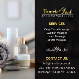 TantricSoul Gay Massage London is a London based gay massage agency providing sensual gay massage to anyone who wants an unforgettable massage experience. We provide many different styles of massage from simple massage techniques to deep tissue massage. We also provide a number of unique packages for our clients which include Tantric massage specialities.