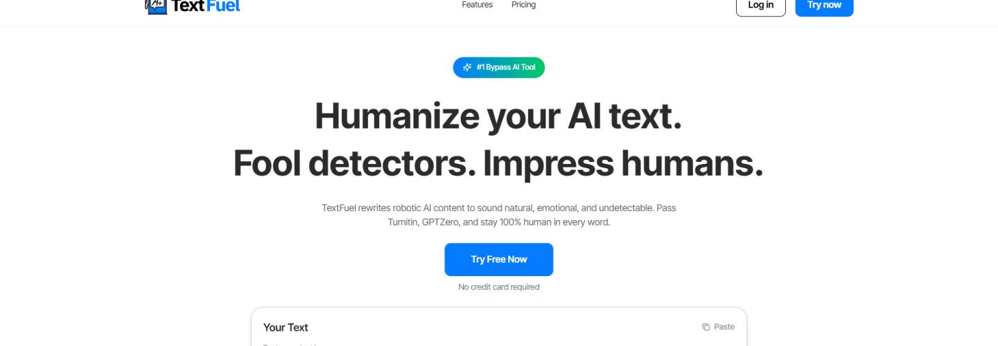 Transform robotic AI text into naturally flowing, emotionally resonant content that bypasses all detection tools. Guaranteed human authenticity for students, marketers, and professional writers. Pass Turnitin and GPTZero, and stay 100% human in every word. AI detectors scan your text for clues, awkward sentence flow, token patterns, and statistical tells. TextFuel’s job? Erase all of that and make it read like a sharp, natural human wrote it from scratch.