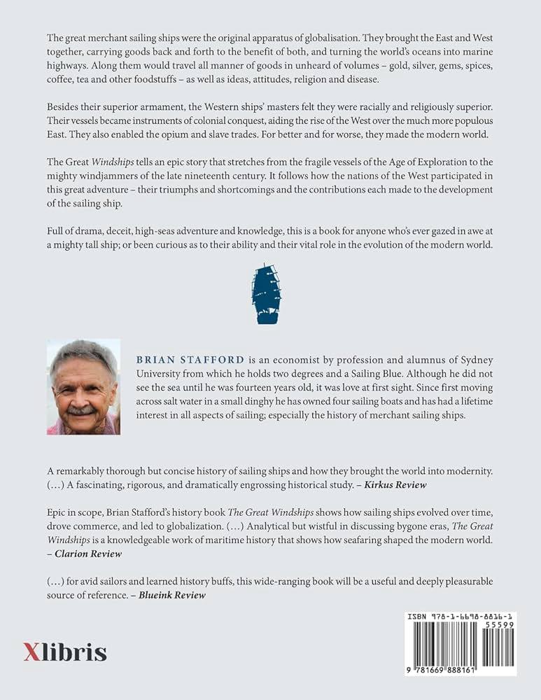 The Great Windships takes readers on a sweeping journey through more than 500 years of maritime history. It explores how fragile wooden vessels became mighty windjammers that connected continents and carried the cargoes that shaped empires. From spices and tea to gems and textiles, merchant sailing ships powered global trade and cultural exchange long before the age of steam. This book reveals how wind, skill, and courage drove the golden age of seafaring and transformed the oceans into highways of commerce.
