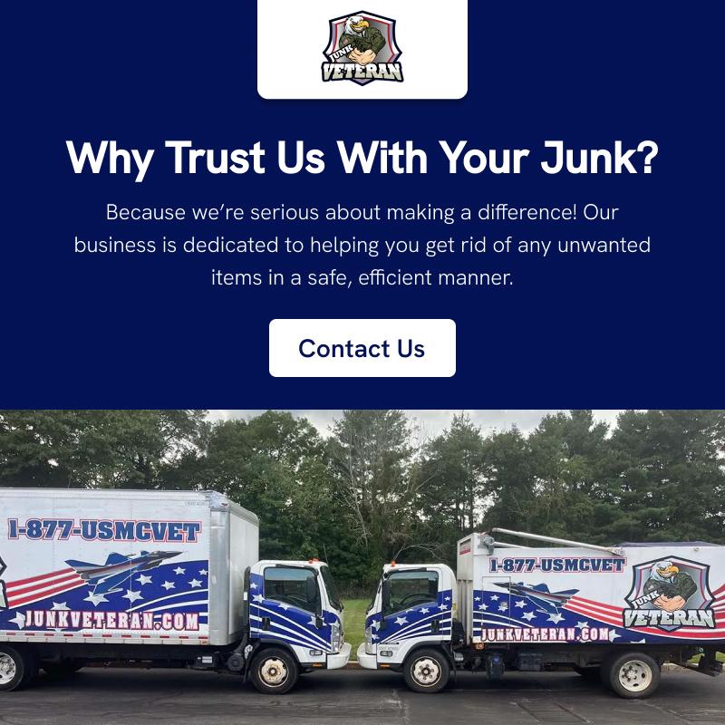 The Junk Veteran is a trusted junk removal company offering top-notch services in Greater Boston. We specialize in junk removal services, including house clean-out services and office furniture removal to keep your space clean and clutter-free. Our eco-friendly junk removal approach guarantees sustainable waste disposal. We also provide construction and yard waste removal, estate cleanouts, and donation pick-up services. Whether it's debris removal or recycling, we’ve got your clutter covered efficiently and responsibly.