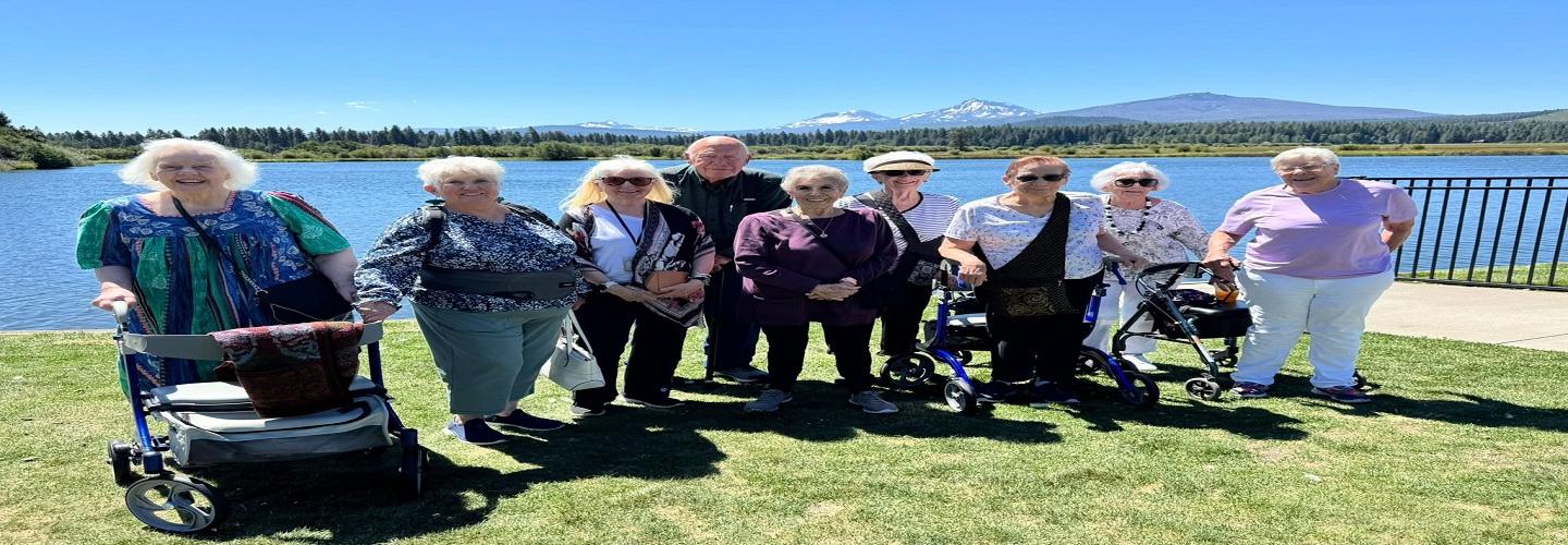 Nestled in the picturesque landscapes of central Oregon, beside the majestic Three Sisters mountains and surrounded by scenic lakes, rivers, and walking trails, The Lodge Retirement Community serves as a premier destination for independent senior living in Deschutes County and nearby areas like Redmond and Bend. Inspired by the cozy charm of a mountain lodge, this pet-friendly community is designed for active adults aged 55+ who seek a fulfilling, maintenance-free lifestyle that emphasizes connection, purpose, and the """"ART of Life"""" through joy, movement, social bonds, spiritual growth, lifelong learning, and nutritious meals.