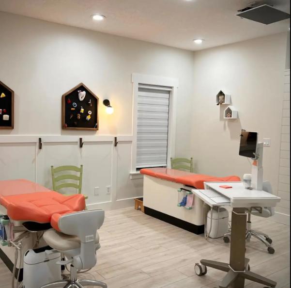 The Tooth Cottage is a “comfy cozy” dental clinic for kids. We have kid friendly benches dedicated to hygiene and simple procedures. Each bench is accompanied by a mounted TV and headphones. We are also using re-usable (and cute) water proof barriers as part of our commitment to be environmentally conscious and reduce plastic waste at the cottage.