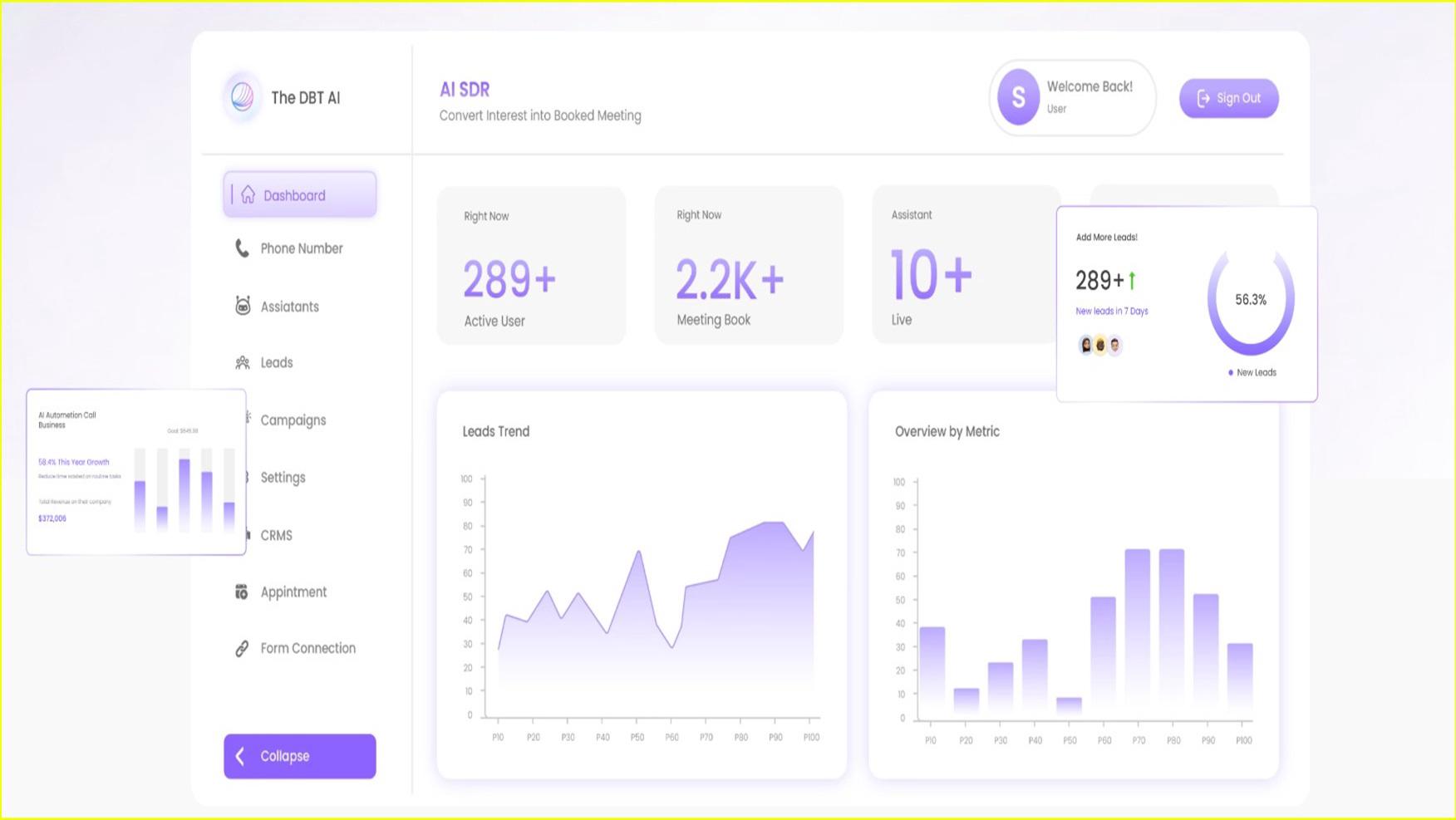 TheDBT.Ai is built to solve a simple but costly problem: slow and inconsistent lead handling. Our platform delivers rapid engagement through an advanced AI appointment setter capable of managing calls, emails, and text conversations with precision. It responds instantly, qualifies prospects, gathers key information, and books appointments within seconds.By automating communication from the first touch to final scheduling, The DBT Ai eliminates missed opportunities and ensures every lead receives immediate, consistent attention. Businesses no longer have to rely on manual outreach or overloaded staff. Instead, they get a system that operates 24/7, follows up relentlessly, and converts more leads into real appointments.AI Appointment Setter: The DBT AI automatically schedules meetings by engaging prospects in real time, confirming availability, and syncing appointments to your calendar.AI Sales Agent: The DBT AI handles end-to-end sales conversations, answers product questions, overcomes objections, and guides leads toward purchase.AI SDR Agent: The DBT AI researches, contacts, and nurtures prospects, qualifying them before handing off high-intent leads to your sales team.AI Receptionist: The DBT AI greets callers or visitors, routes inquiries, answers FAQs, and ensures every interaction is handled professionally.AI Lead Qualification: The DBT AI evaluates incoming leads through smart conversations, scoring intent and readiness to prioritize the best opportunities.AI Cold Calling Agent: The DBT AI conducts outbound calls at scale, delivers personalized pitches, and identifies interested prospects without human fatigue.The DBT Ai isn’t just a tool—it’s the bridge between lead generation and revenue growth. It gives businesses the speed, reliability, and efficiency needed to stay ahead in a competitive market.