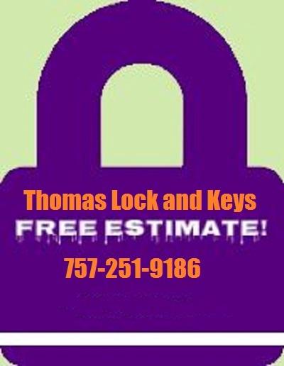 Call Thomas Lock and Keys now at 757-251-9186 for rapid response service.We are the best number one locksmith working in Virginia Beach, VA. Call Thomas Lock and Keys at 757-251-9186 to receive a free quote and 10% off the bill when you mention this ad.Thomas Lock and Keys specializes in high security locks, install master key systems, install panic hardware, re-keying, safes, security systems, 24/7 service, break-in repairs, cars unlocked, 247 emergency service, homes unlocked, locks re-keyed, peephole installation, radio-dispatched, remove broken keys, safes unlocked, car keys made, work evenings, work weekends, dead-bolts, digital door locks, door locks, gun locks, window bars, window locks, window gates, ignition switch keys, transponder keys, and broken key extractions. Service or Product: locksmith serviceBusiness Hours: Mon-Sat: 9:00am - 7:00pm