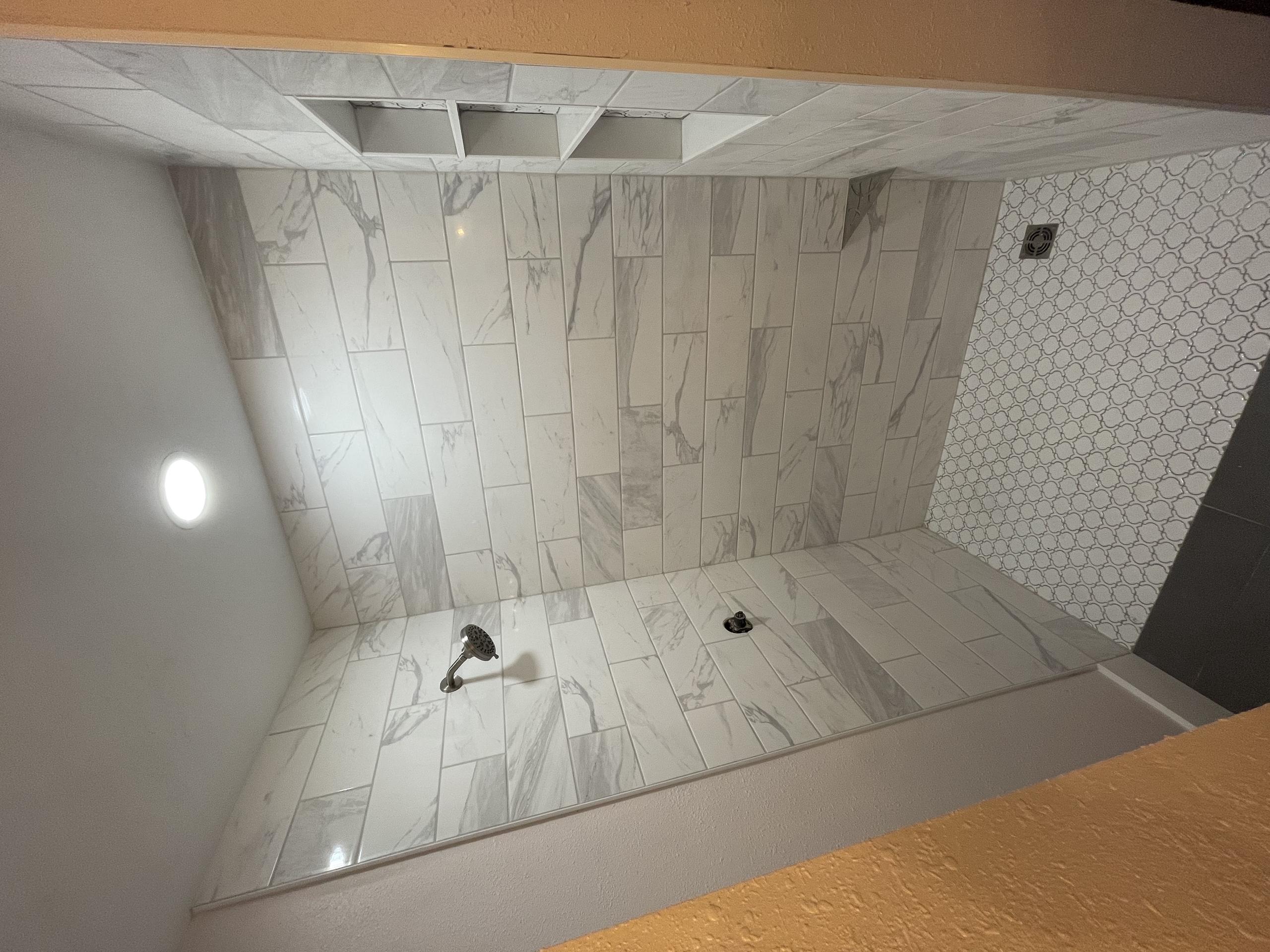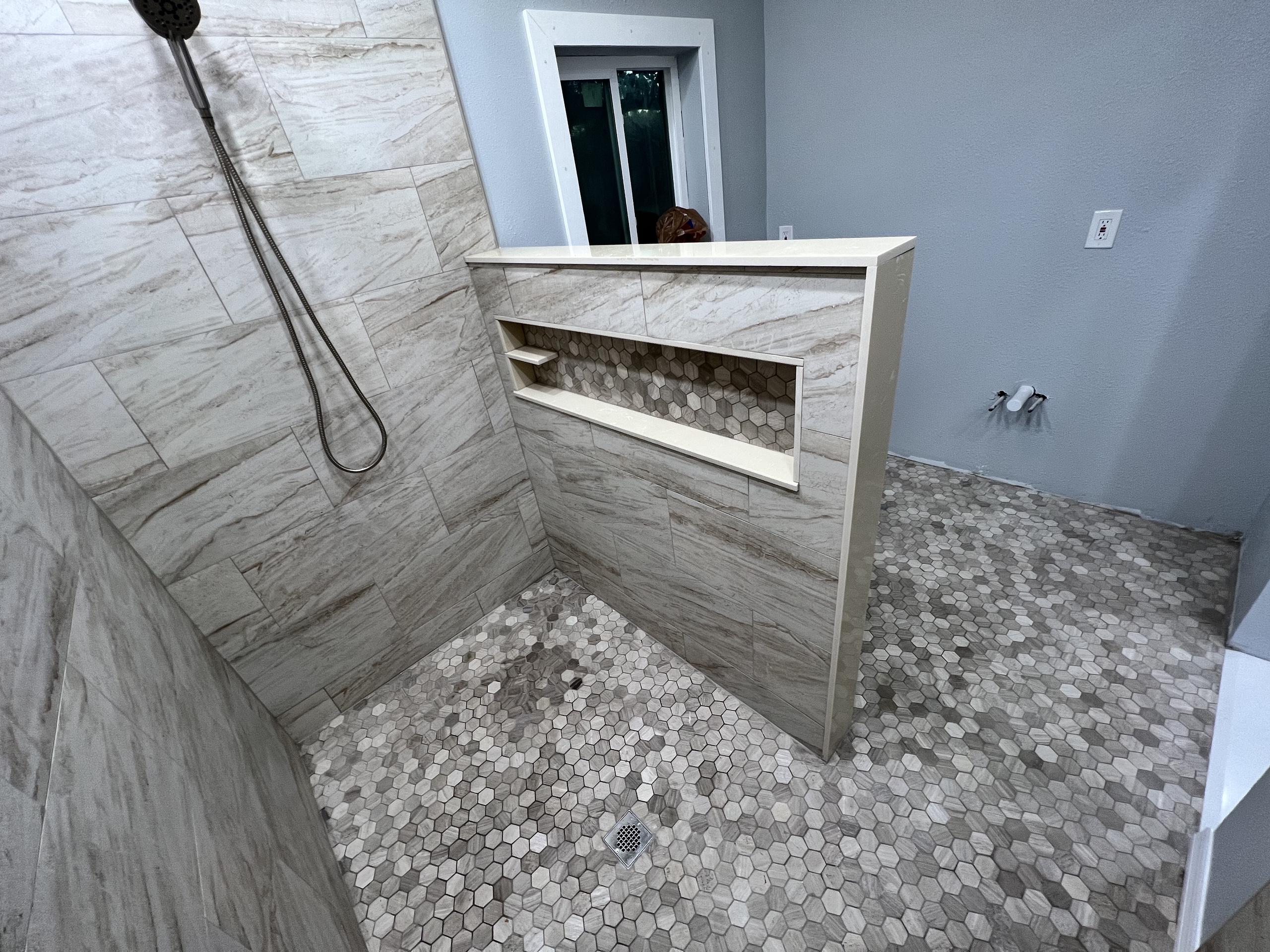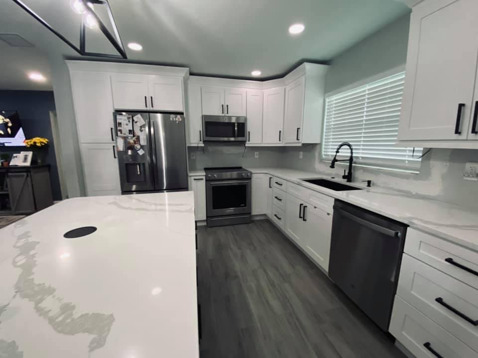 Total floor and more is a general contractor that specializes in custom bathroom and kitchen renovations, we take great pride in the work we do. We ensure a 100% waterproof shower each time. We work with porcelain, ceramic large format tiles and even small designs. We do work for designers and customers. We are a one stop shop for a full renovation. We also install flooring, large tiles and lvt flooring even laminate flooring. Once the floor is installed we install all new baseboards and quarter round. Kitchens are also a specialty of ours we will come and design a new kitchen with current designs in mind. We can order your cabinets or even custom make the cabinets with all soft close doors and drawers. Once the kitchen is installed we can install quartz or granite countertops to complete the kitchen. Of course we also will install backsplashes. Or services are not limited to full remodels we also do drywall repair, popcorn removal, removal or walls or install doors and windows.