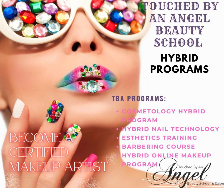 TBA also offers a hybrid nail school for those passionate about nail technology and a hybrid cosmetology instructor program for experienced professionals ready to teach and lead. At Touched By An Angel, we’re dedicated to helping you build a successful beauty career with flexible, supportive, and high-quality education.