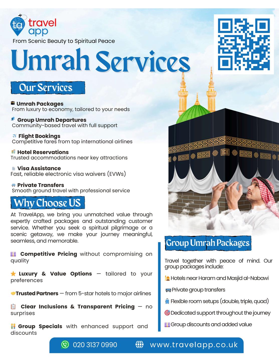Travelapp is a premier UK-based travel agency, proudly opening on Elm Street in Burnley, dedicated to making travel simpler, smarter, and stress-free. From affordable flights and luxury hotels to bespoke holiday packages and spiritual journeys, including expertly curated Umrah packages, Travelapp brings the world within your reach.