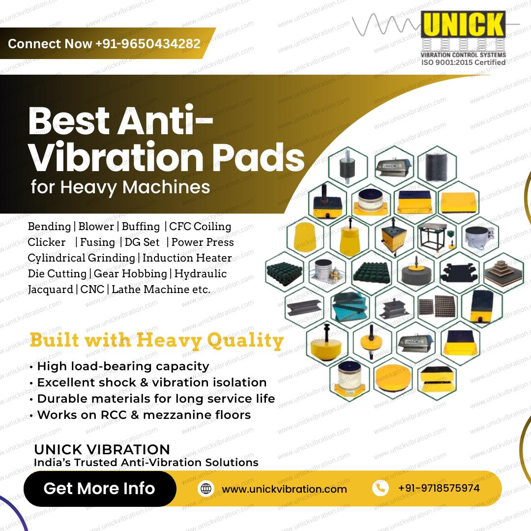 Unick Vibration Control Systems (P) Limited (formerly Unique Engineering Works) is a pioneer in manufacturing Anti-Vibration Pads since 2012. We are a leading manufacturer, supplier, and exporter of high-quality Anti-Vibration and Leveling Pads for all types of industrial machinery.