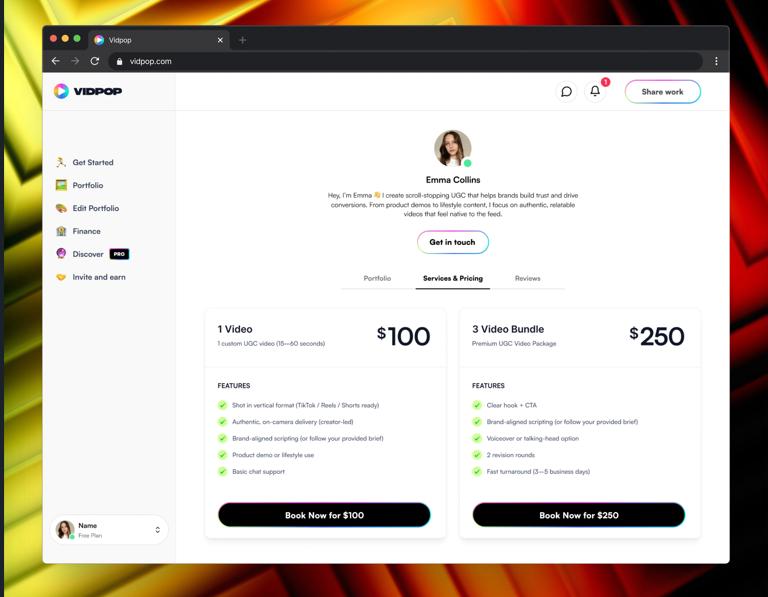 Vidpop is an all-in-one platform for UGC creators to get discovered, get paid, and grow their business. Create a professional portfolio, collaborate with brands, manage projects, receive payments, and track performance—all from one simple dashboard. It essentially functions as a CRM built exclusively for the relationship between UGC creators and brand managers. The software helps you cultivate long-term partnerships by keeping your communication organized and professional. By using the platform's portfolio tools, you can constantly update your best work and attract higher-paying campaigns. The integrated payment and performance tracking provide a level of business intelligence that was once reserved for large agencies. Stop acting like a hobbyist and start running your creator business with the power of Vidpop behind you.