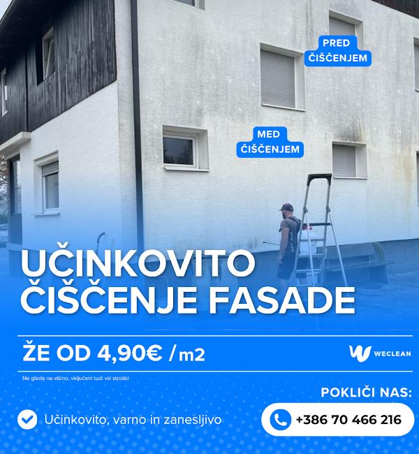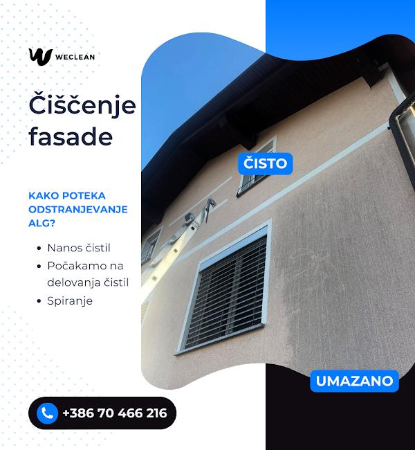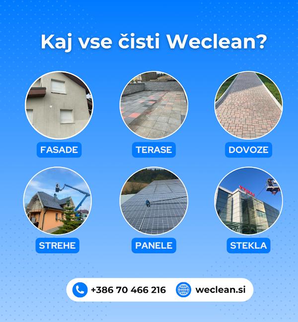 Weclean je podjetje specializirano za visokotlačno in nizkotlačno čiščenje zunanjih površin. Nudimo učinkovito čiščenje in vzdrževanje fasad, dvorišč, streh, ograj, teras in drugih površin za domove, počitniške objekte in podjetja. Naš cilj je povrniti prvoten videz površin ter s tem podaljšati njihovo življenjsko dobo.