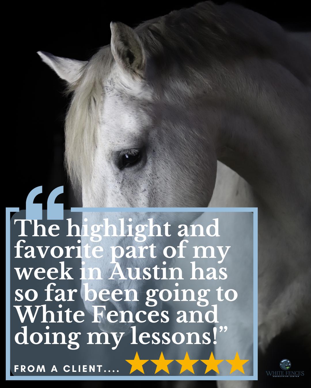 White Fences Equestrian Center, located just outside Austin in Manor, Texas, offers premium horse boarding, expert English riding lessons with a focus on Dressage and hunter/jumper, and professional dressage training. Our full-service equestrian facility features spacious stalls, safe pastures, and a covered arena, covered round pen and designed for year-round riding. We provide personalized care for each horse and tailored programs for riders of all skill levels, from beginners to advanced competitors. Trusted by horse owners across Central Texas, we are dedicated to creating a welcoming, family-friendly environment for learning, training, and achieving equestrian goals.