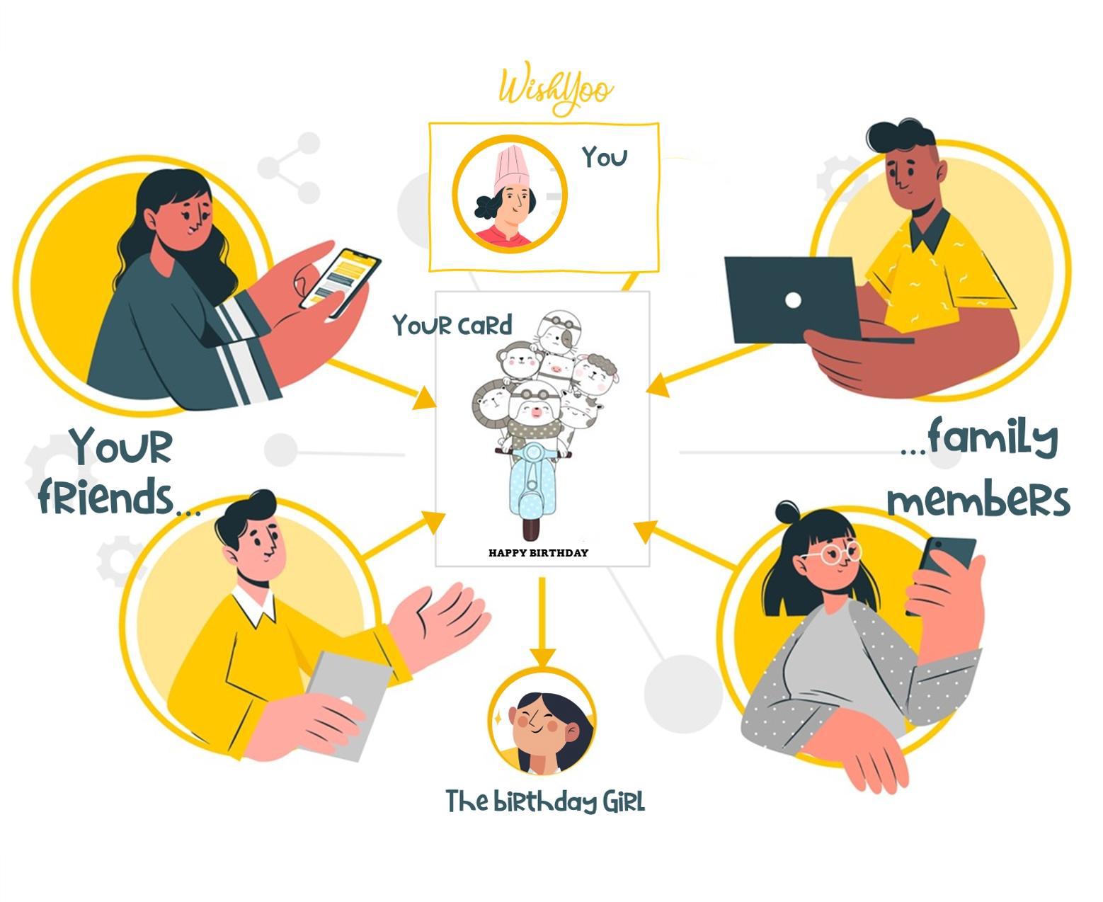 WishYoo is the ultimate group ecard solution for all your celebratory needs. Whether you want to send a group greeting or a personalized message, our easy-to-use greeting card maker is here to make the process effortless and enjoyable.