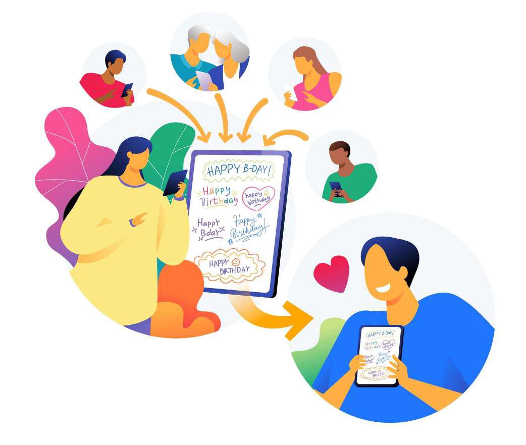 Our intuitive platform allows you to handwrite or type your message, giving it a personal touch. You can also include images, stickers, doodles or a voice message to make the card even more vibrant.