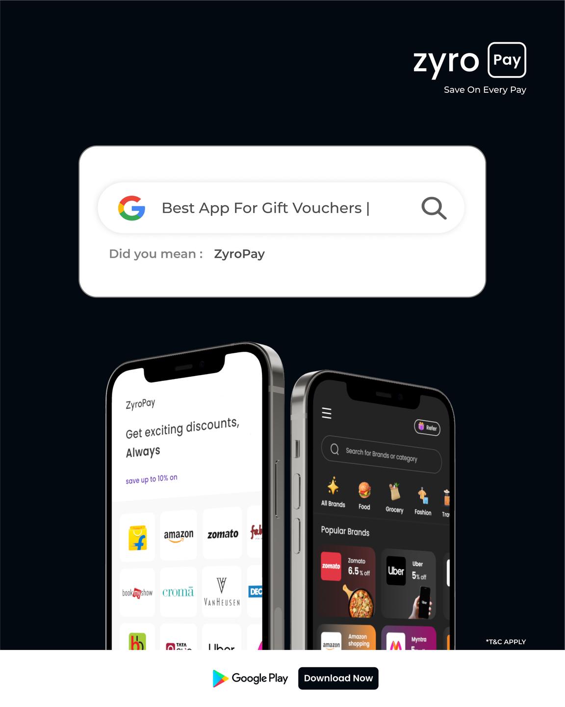 ZyroPay provides a convenient way to purchase e-gift cards and gift vouchers from 350+ trendy brands across 27+ categories. With a user-friendly platform, you can buy the best gift cards, taking advantage of exclusive gift card offers and instant savings on top brands. Our secure and efficient service ensures a smooth transaction process, offering you the convenience of digital gift cards and delivering value for money with every purchase. Additionally, enjoy the flexibility of online gift cards for a hassle-free shopping experience.